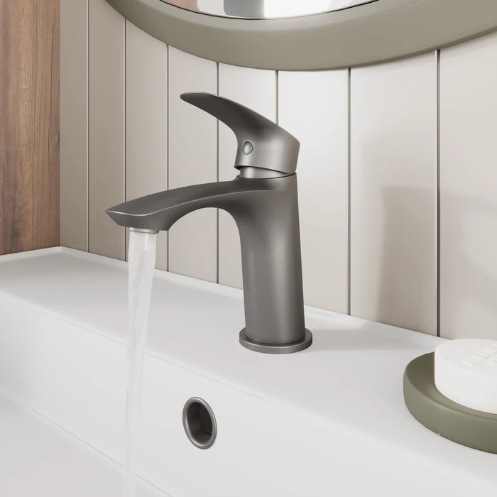 Смеситель для умывальника Rora отличается универсальным характером: основной акцент в его дизайне приходится на плавные линии корпуса и трендовый цвет. Модель в графитовом цвете одинаково выигрышно смотрится на контрастных белоснежных раковинах и дополняет собой керамику темных оттенков. Благодаря увеличенному выносу излива вода из смесителя поступает в раковину в самой удобной точке, что обеспечивает максимальную свободу движения в зоне умывания. В комплекте гибкая подводка и крепеж. Качественный механизм смешивания воды смесителя Milardo® рассчитан на более чем 70 000 циклов работы – это не менее 15 лет эксплуатации семьей из трех человек. PVD-покрытие смесителя нанесено методом вакуумного напыления, при котором частички краски проникают глубоко в структуру металла. Подобная технология обеспечивает высокую стойкость цвета при негативном воздействии внешних факторов. Встроенный аэратор легко извлекается из корпуса смесителя с помощью обычной монетки, что значительно упрощает его очистку.
