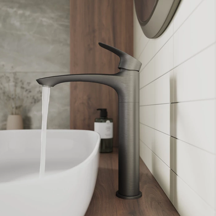 Смеситель для умывальника Rora отличается универсальным характером: основной акцент в его дизайне приходится на плавные линии корпуса и трендовый цвет. Модель в графитовом цвете одинаково выигрышно смотрится на контрастных белоснежных раковинах и дополняет собой керамику темных оттенков. Высокий смеситель (290 мм) подходит для установки с накладными раковинами-чашами. В комплекте гибкая подводка и крепеж. Качественный механизм смешивания воды смесителя Milardo® рассчитан на более чем 70 000 циклов работы – это не менее 15 лет эксплуатации семьей из трех человек. PVD-покрытие смесителя нанесено методом вакуумного напыления, при котором частички краски проникают глубоко в структуру металла. Подобная технология обеспечивает высокую стойкость цвета при негативном воздействии внешних факторов. Встроенный аэратор легко извлекается из корпуса смесителя с помощью обычной монетки, что значительно упрощает его очистку.