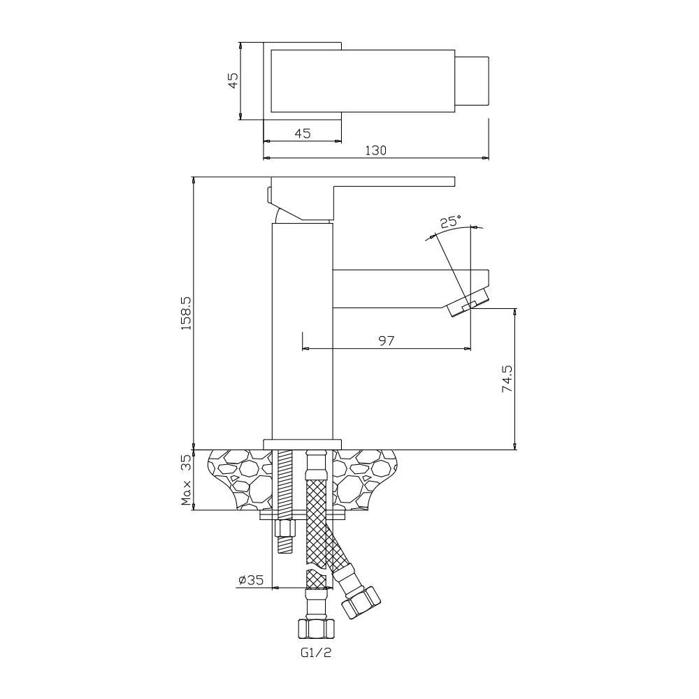 Стандарт подводки: гибкий 1/2.