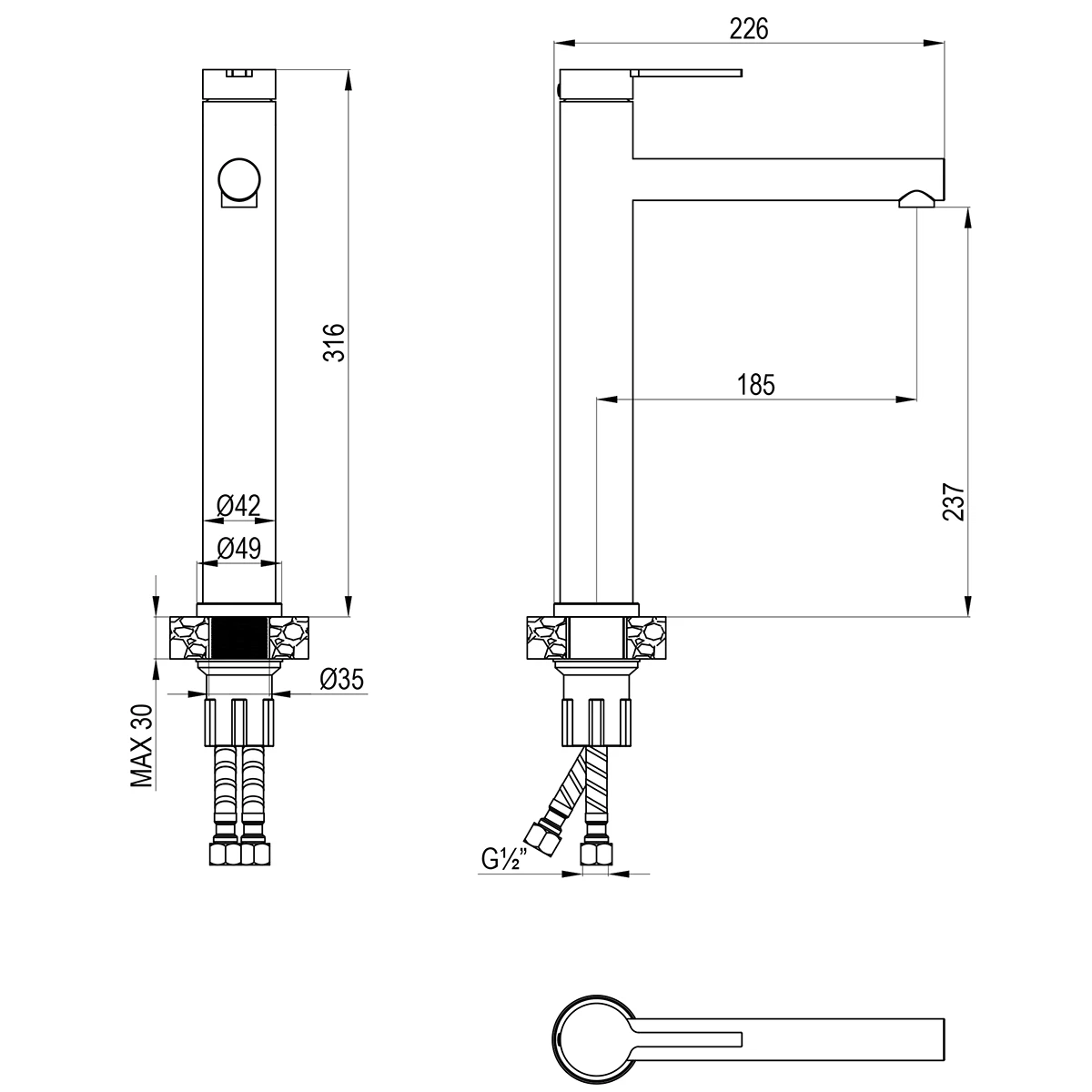 Смеситель для раковины Rossinka RODCHENKO RSF-1715S-BL высокий, черный
