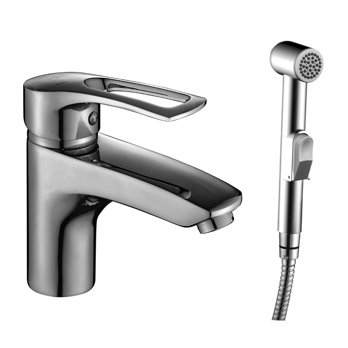- Аксессуары в комплекте (шланг 1,5 м, лейка для биде с нажимным механизмом, настенное крепление для лейки)