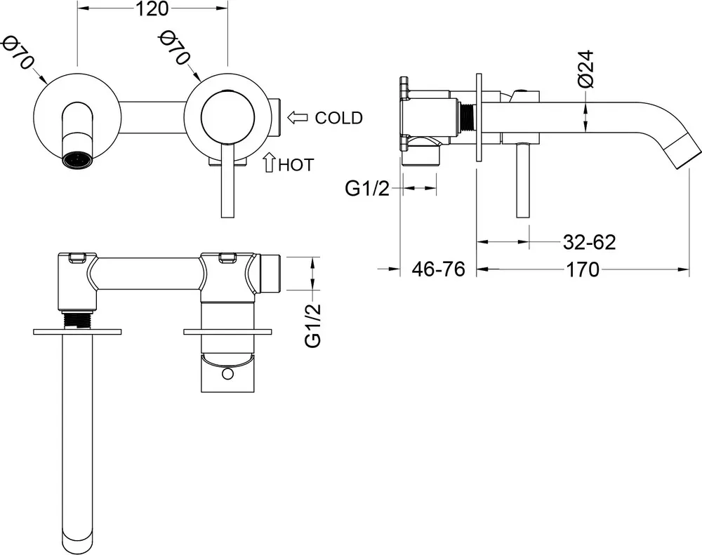 - Длина излива (расстояние от корпуса смесителя до конца излива): 17 см