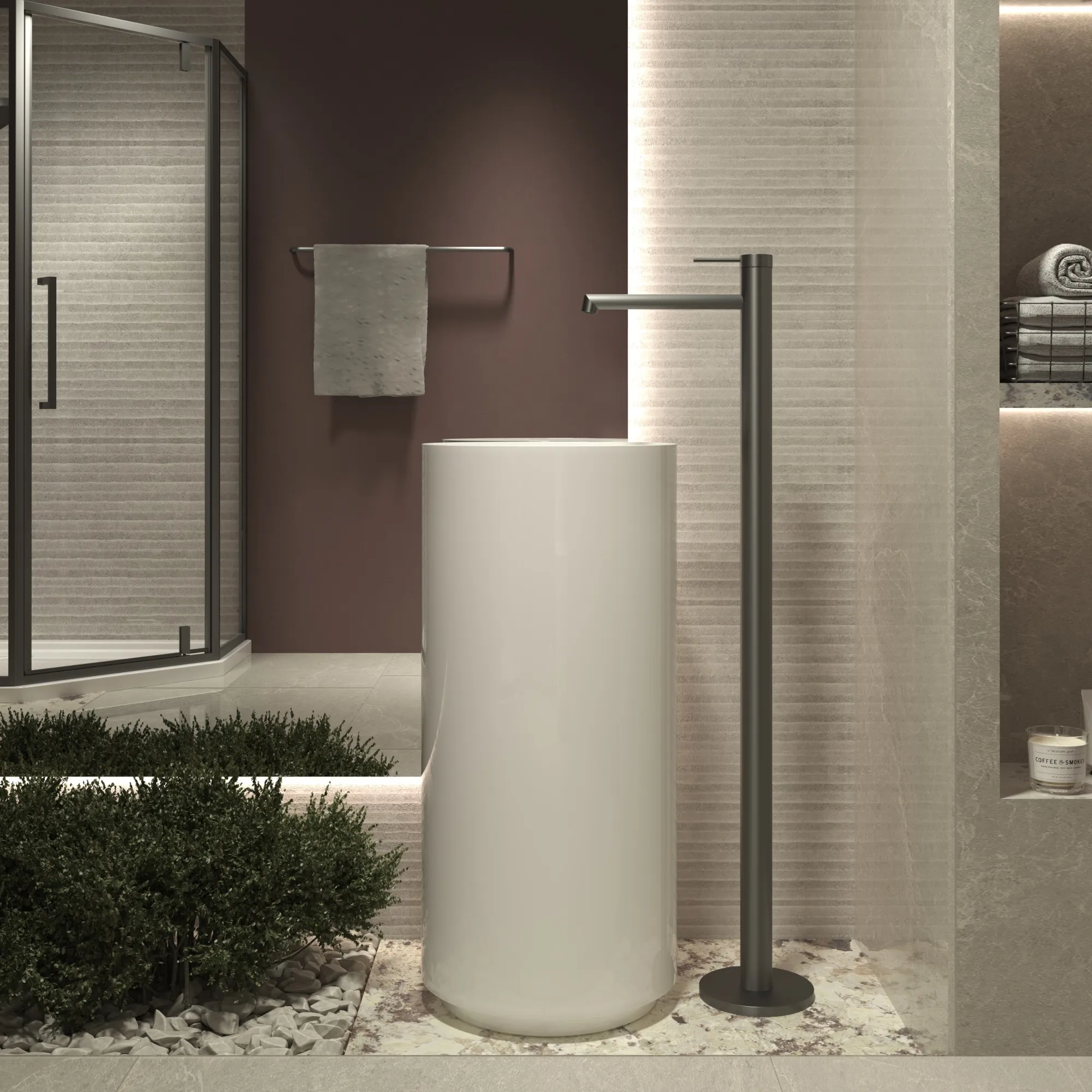 Смеситель для раковины Vincea Rim VFBF-2R1GM напольный, вороненая сталь