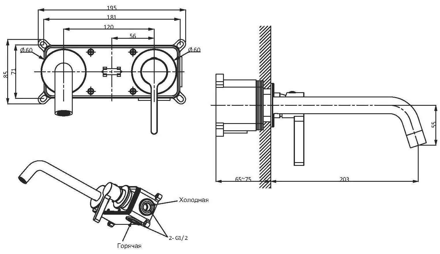 Смеситель для раковины Vincea Villa VBFW-1VL1CH скрытого монтажа, хром