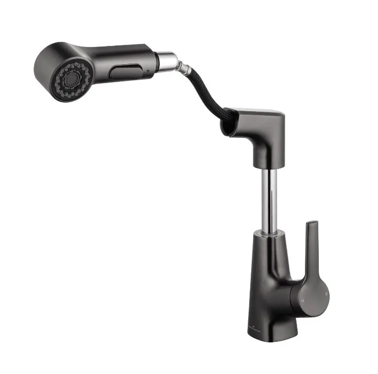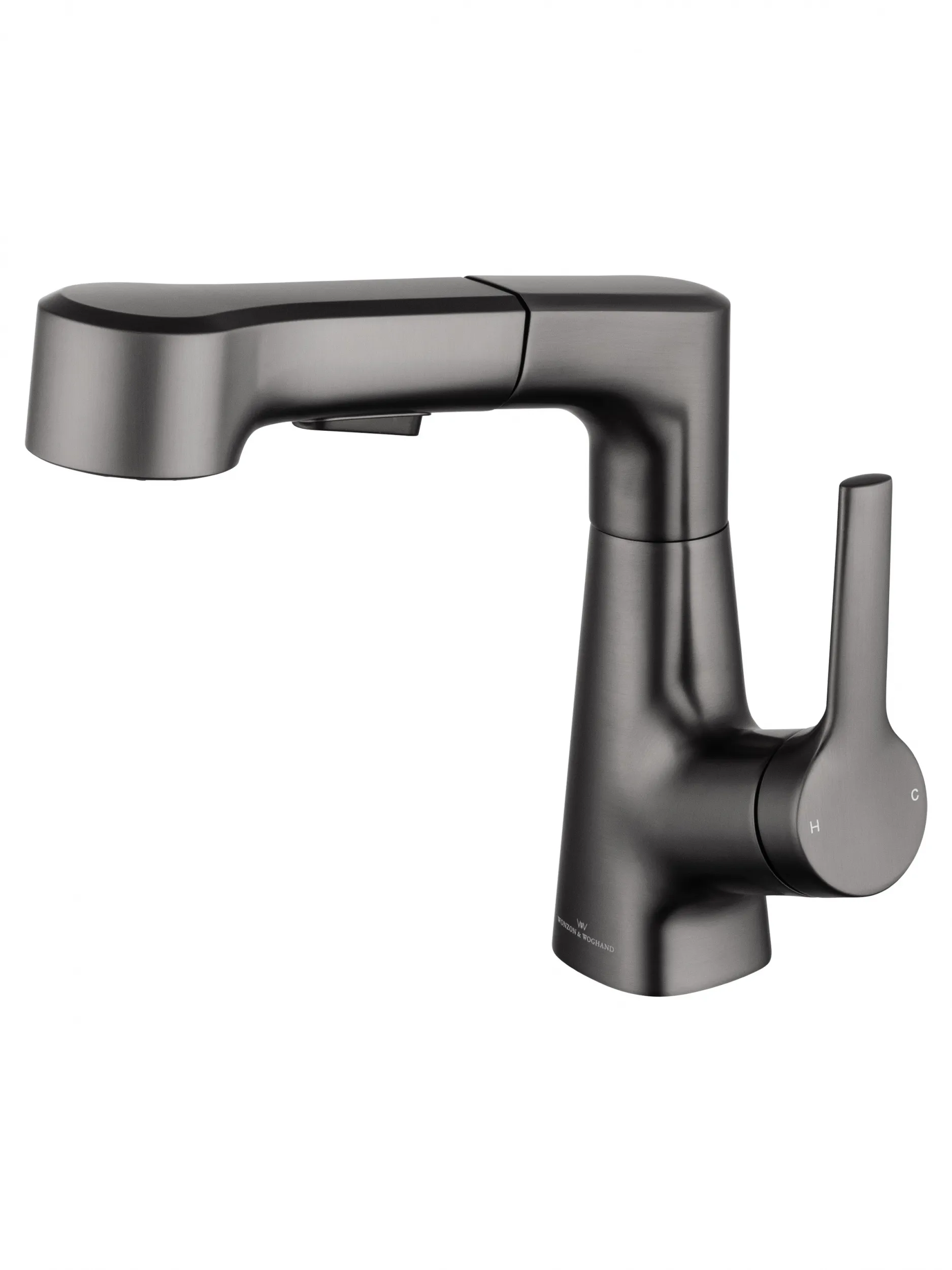 Смеситель для раковины Wonzon & Woghand WW-121B108-BGG с выдвижным изливом, темный графит