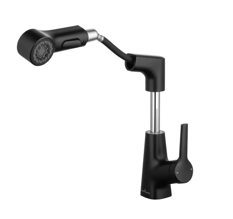 Смеситель для раковины Wonzon & Woghand WW-121B108-MB с выдвижным изливом, чёрный матовый