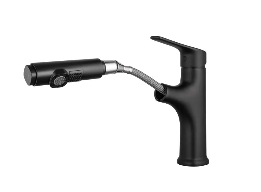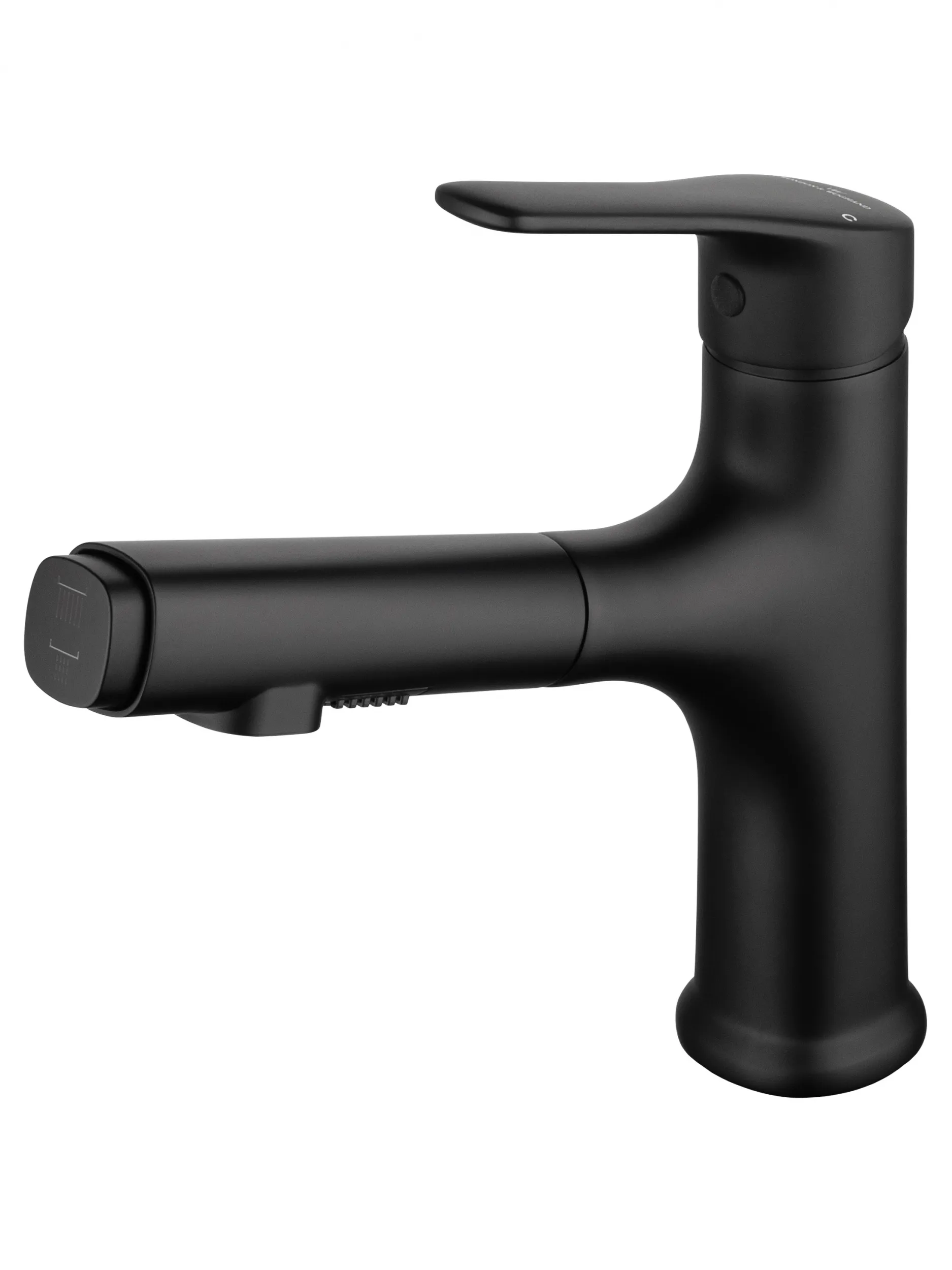 Смеситель для раковины Wonzon & Woghand WW-AE4151-MB с выдвижным изливом, чёрный матовый