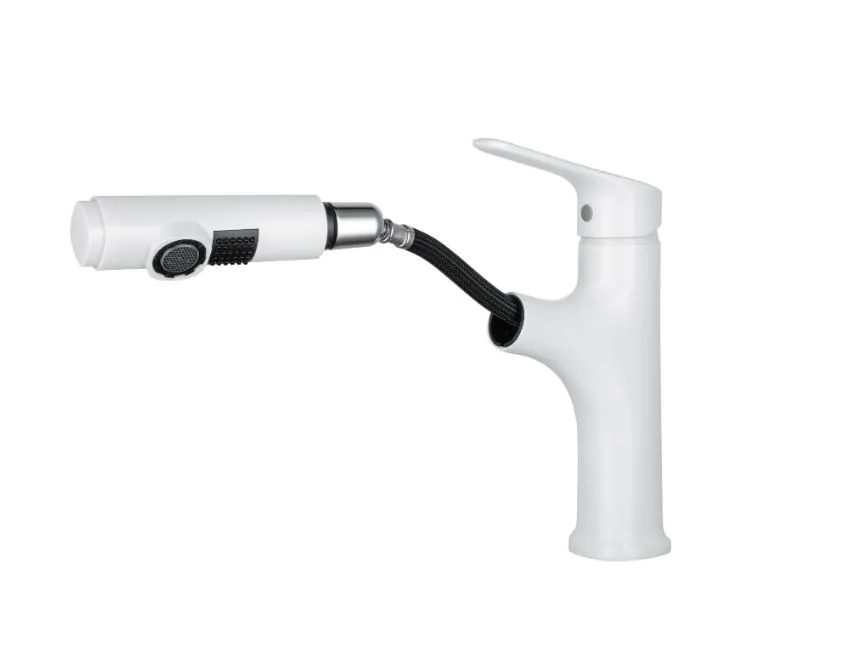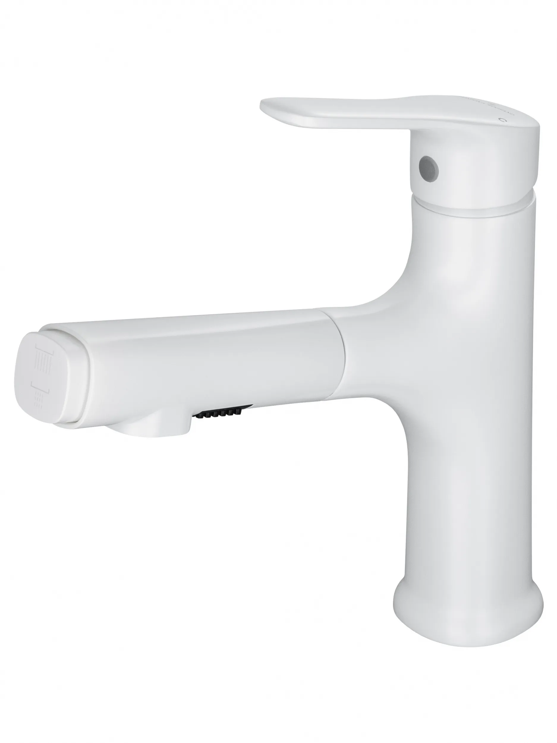 Смеситель для раковины Wonzon & Woghand WW-AE4151-MW с выдвижным изливом, белый матовый