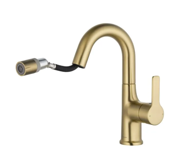 Смеситель для раковины Wonzon & Woghand WW-FE01L212-BG с выдвижным изливом, брашированное золото