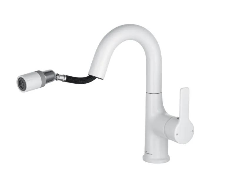 Смеситель для раковины Wonzon & Woghand WW-FE01L212-MW с выдвижным изливом, белый матовый