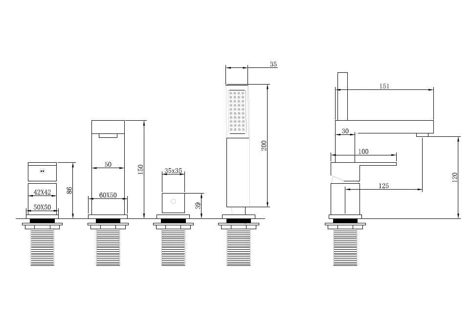 В комплекте поставки: смеситель на борт ванны, ручной душ, душевой шланг.