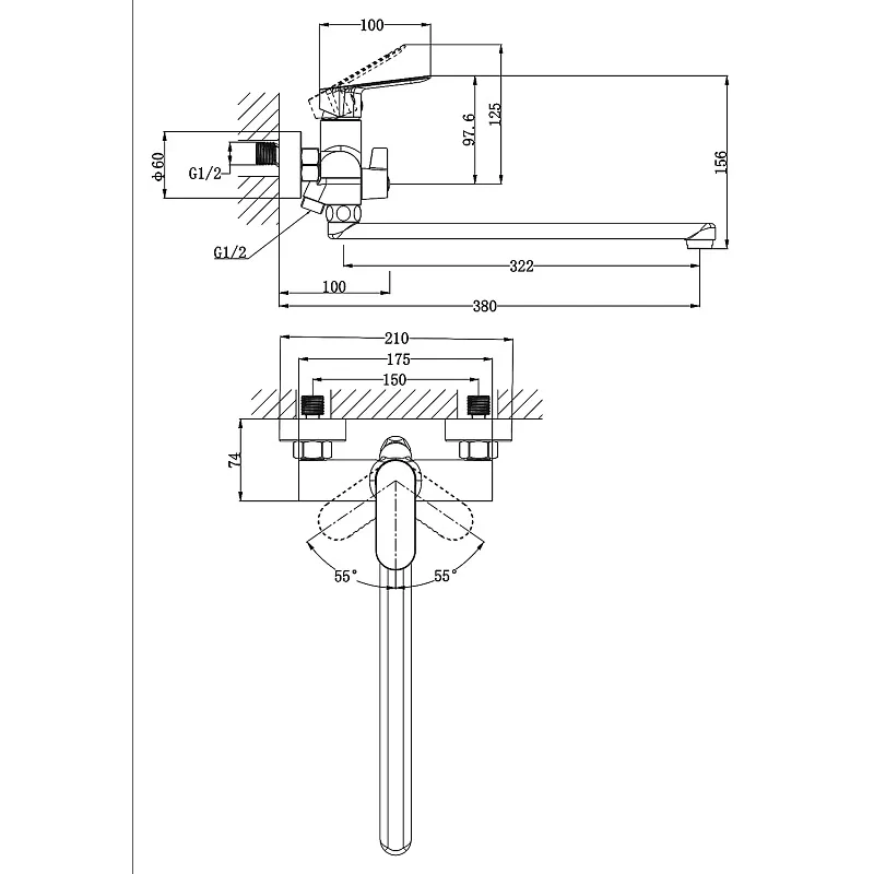 - Длинный поворотный излив (32.2 см) — это решение для просторных ванн. Он обеспечивает комфортное наполнение, позволяет с легкостью мыть голову над ванной или набирать воду в крупные емкости, не испытывая неудобств.