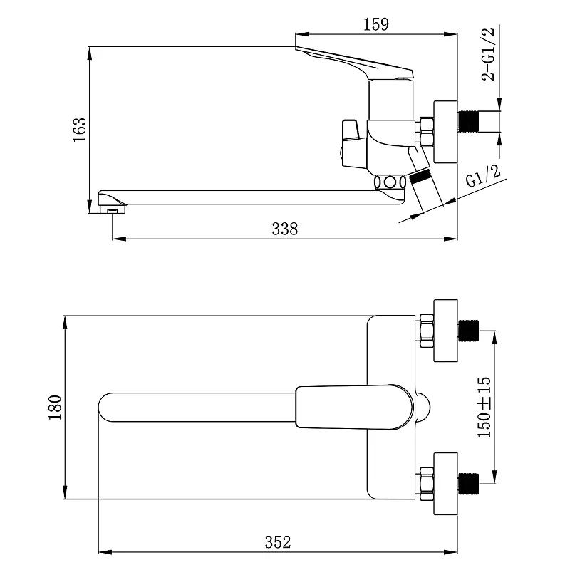 - Излив длиной 33.8 см — это решение для просторных и стандартных ванн. Он обеспечивает комфортное наполнение, позволяет с легкостью мыть голову над ванной или набирать воду в крупные емкости, не испытывая неудобств. Поворотный механизм добавляет маневренности в использовании.