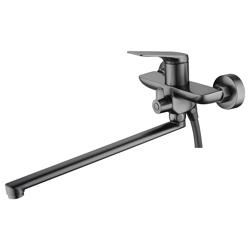 - Излив длиной 33.8 см — это решение для просторных и стандартных ванн. Он обеспечивает комфортное наполнение, позволяет с легкостью мыть голову над ванной или набирать воду в крупные емкости, не испытывая неудобств. Поворотный механизм добавляет маневренности в использовании.