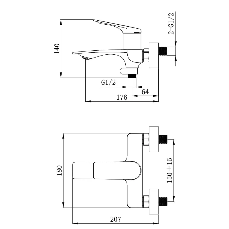 - Фиксированный излив длиной 17.6 см оптимален для комфортного наполнения ванны.