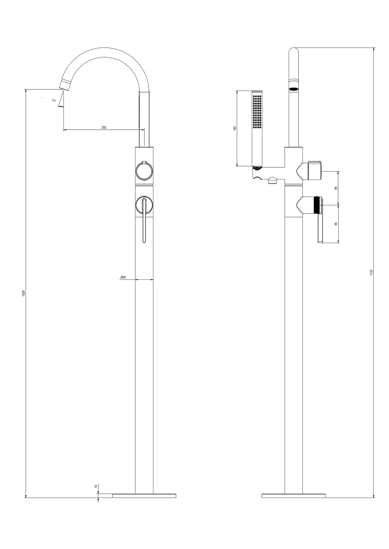 - Смеситель для ванны DQ Bonn DA1706005 напольный, черный