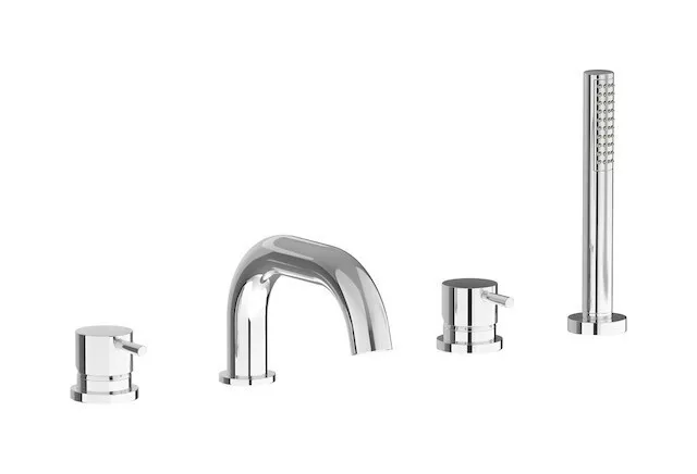 - Смеситель на борт ванны на 4 отверстия, с дивертором с изливом и ручным душем.