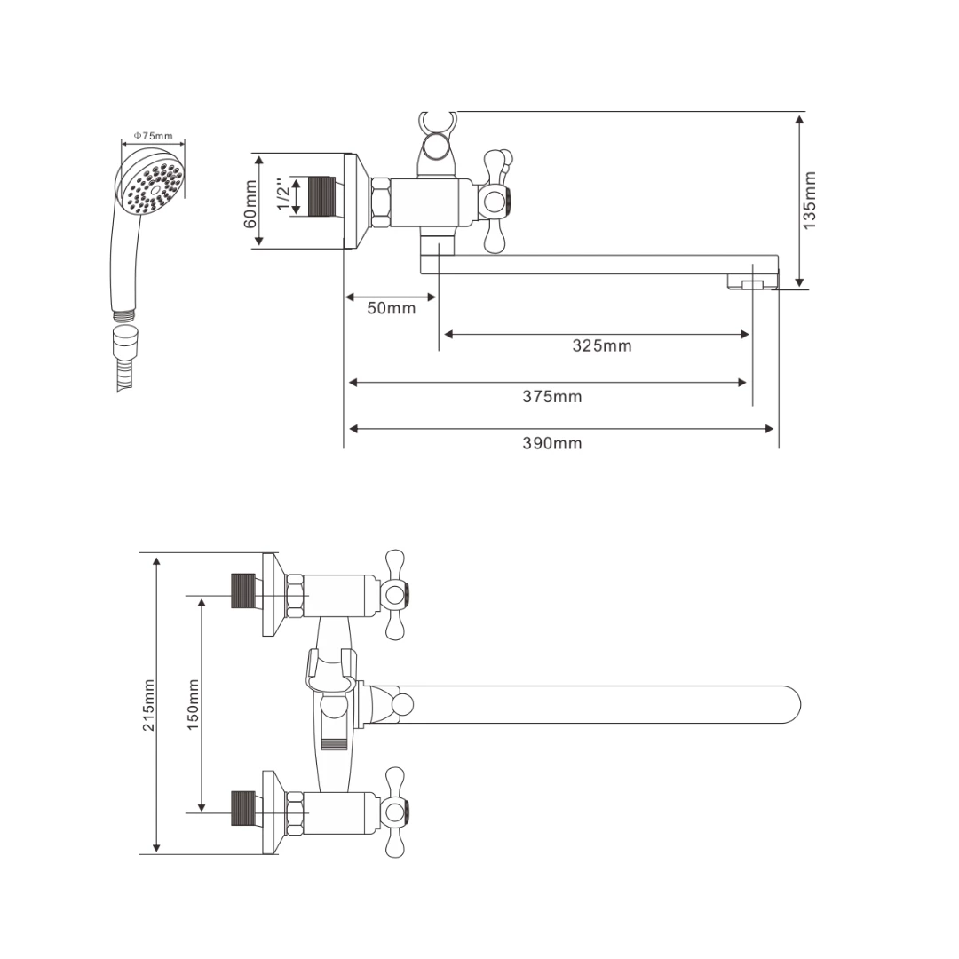 Смеситель для ванны с длинным изливом OLIVE’S Economy ANARI двухвентильный (AN19221)
