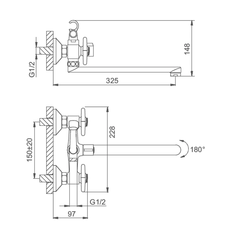 Тип дивертора: переключатель с керамическими пластинами (угол поворота 90°)