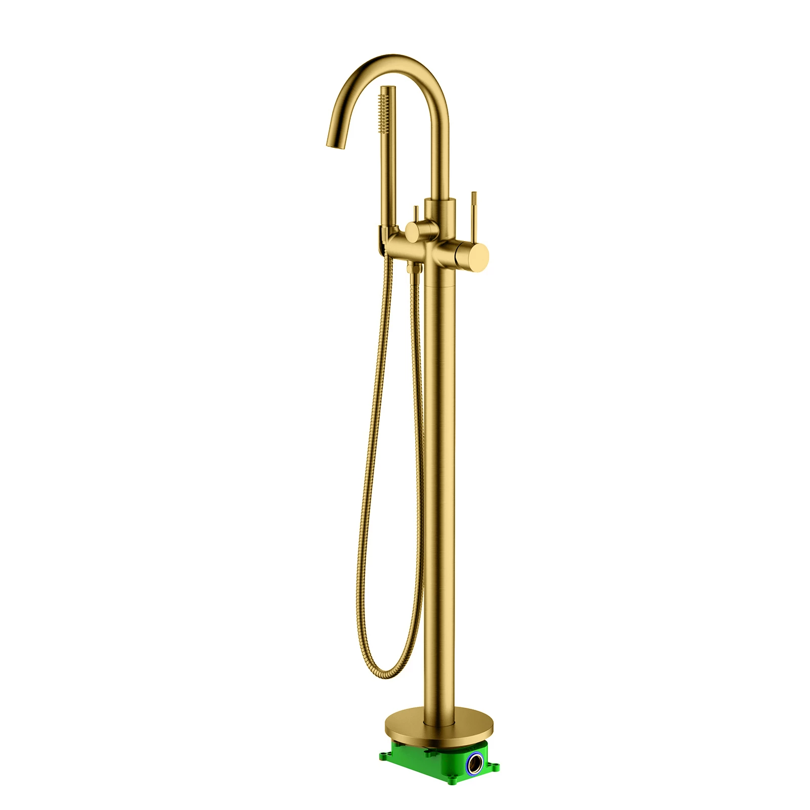 Цвет "шлифованное золото" имеет матовую, гладкую поверхность с легким блеском и более яркий оттенок, чем "матовое золото". Цвет натурального золота добавит роскоши в ванной комнате. Напольный смеситель Timo Saona 2310 предназначен для установки в ванную комнату. Дизайнерская модель одинаково подходит для классического или современного интерьера и станет идеальным сочетанием практичности и комфорта. Основные преимущества: все коммуникации, крепления спрятаны в полу, видны только декоративные элементы. Установить смеситель можно в любом месте. Статичная конструкция не требует ремонта ввиду отсутствия подвижного механизма. Смеситель управляется джойстиком, плавно регулирующим температуру воды и напор. Переключение режимов излив / ручная лейка осуществляется дивертором расположенном на корпусе смесителя. Сложностей монтажа не возникает при установке смесителя опытным сантехником. Внимательно изучите инструкцию по монтажу и эксплуатации. Цвет "шлифованное золото" не оставляет отпечатков пальцев и других загрязнений на поверхности.