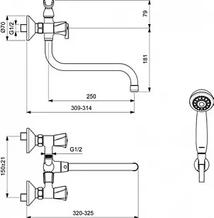 | Особенности: | набор (смеситель и душ) , для ванны и душа |