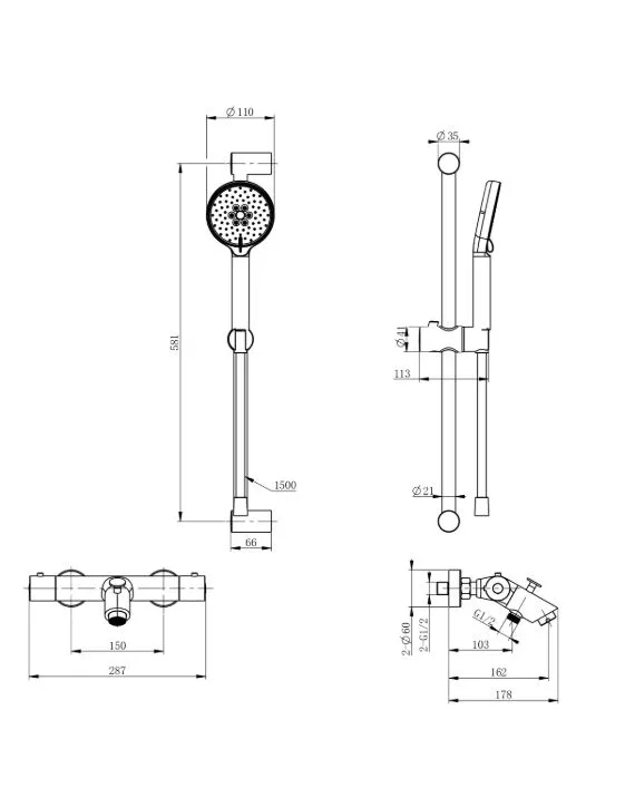 - Душевой шланг с защитой от перекручивания: 150 см.