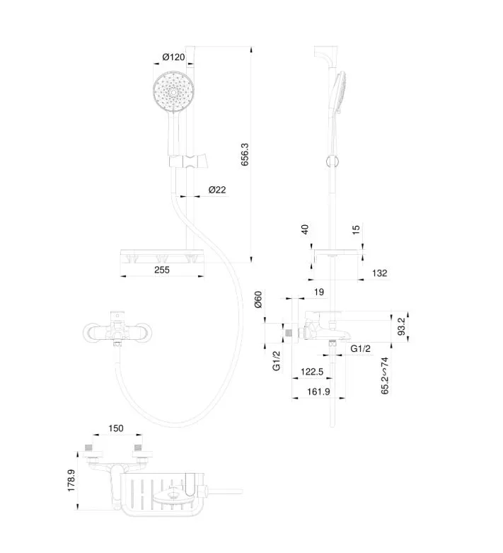 - Душевой шланг с защитой от перекручивания: 150 см.