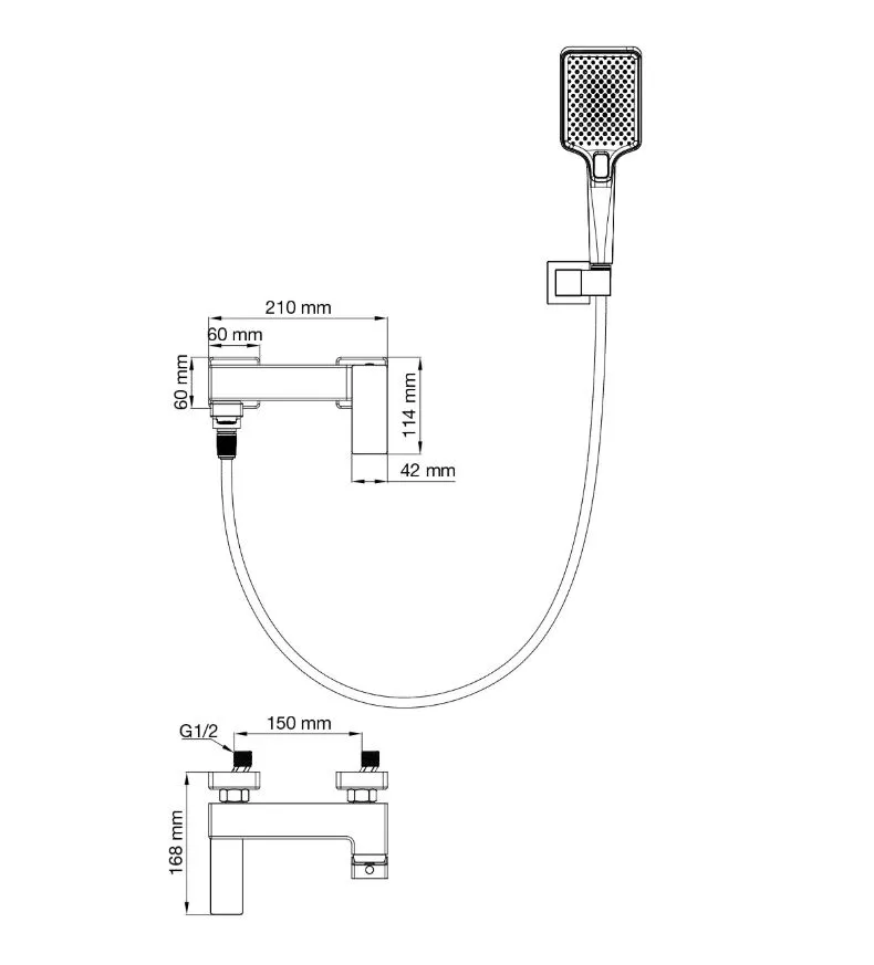 - Душевой шланг с защитой от перекручивания: 150 см.