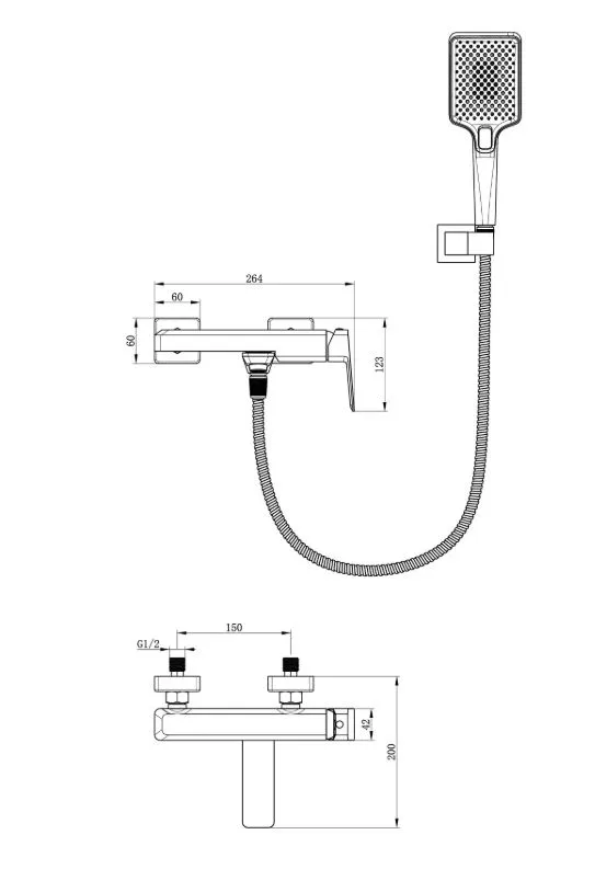 - Душевой шланг с защитой от перекручивания: 150 см.