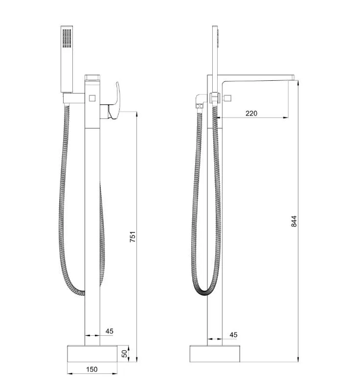 - Душевой шланг с защитой от перекручивания: 150 см.