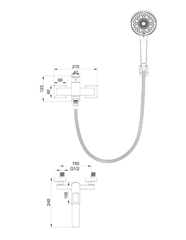 - Душевой шланг с защитой от перекручивания: 150 см.