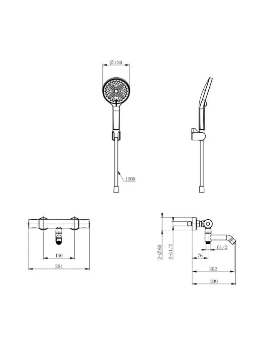 - Душевой шланг с защитой от перекручивания: 150 см.