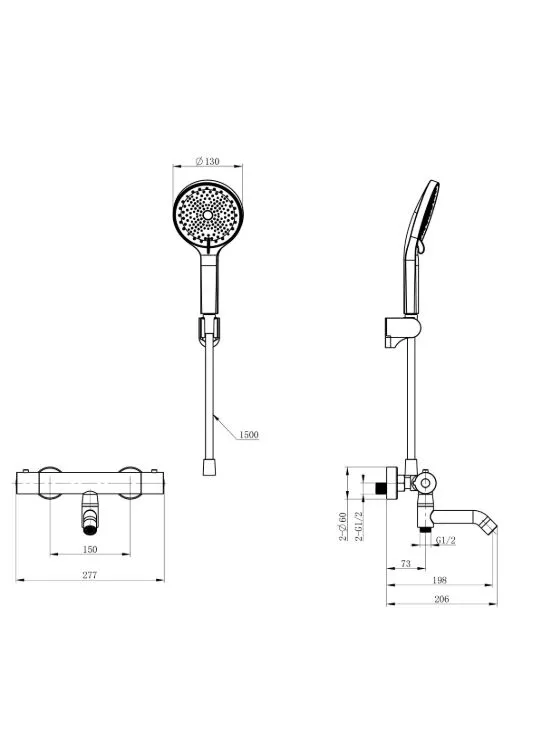 - Душевой шланг с защитой от перекручивания: 150 см.
