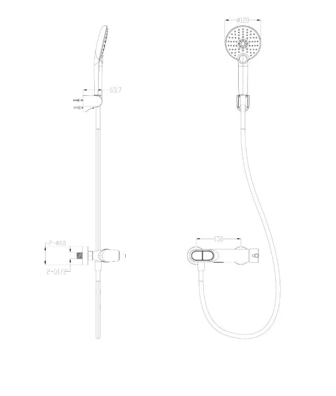 - Душевой шланг с защитой от перекручивания: 150 см.