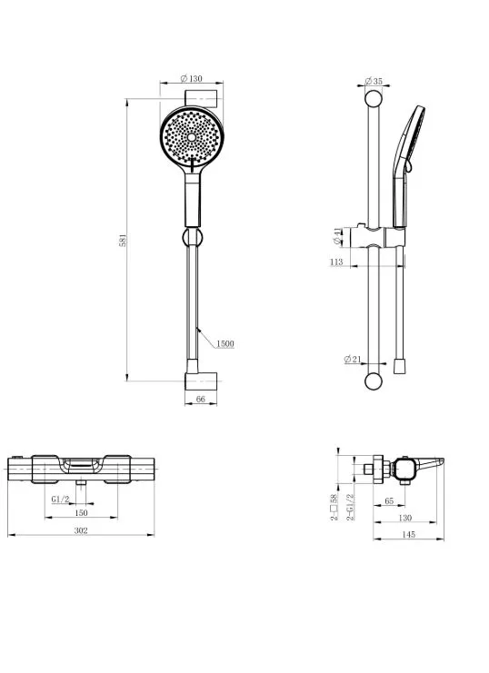 - Душевой шланг с защитой от перекручивания: 150 см.