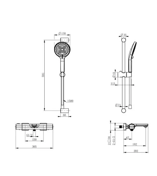 - Душевой шланг с защитой от перекручивания: 150 см.
