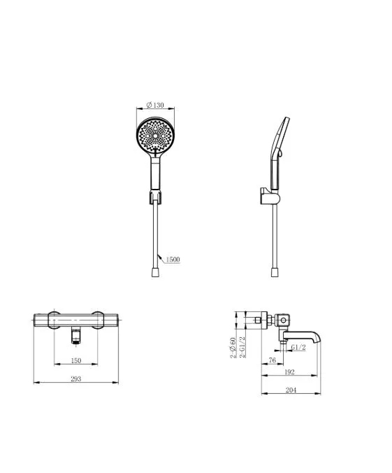 - Душевой шланг с защитой от перекручивания: 150 см.