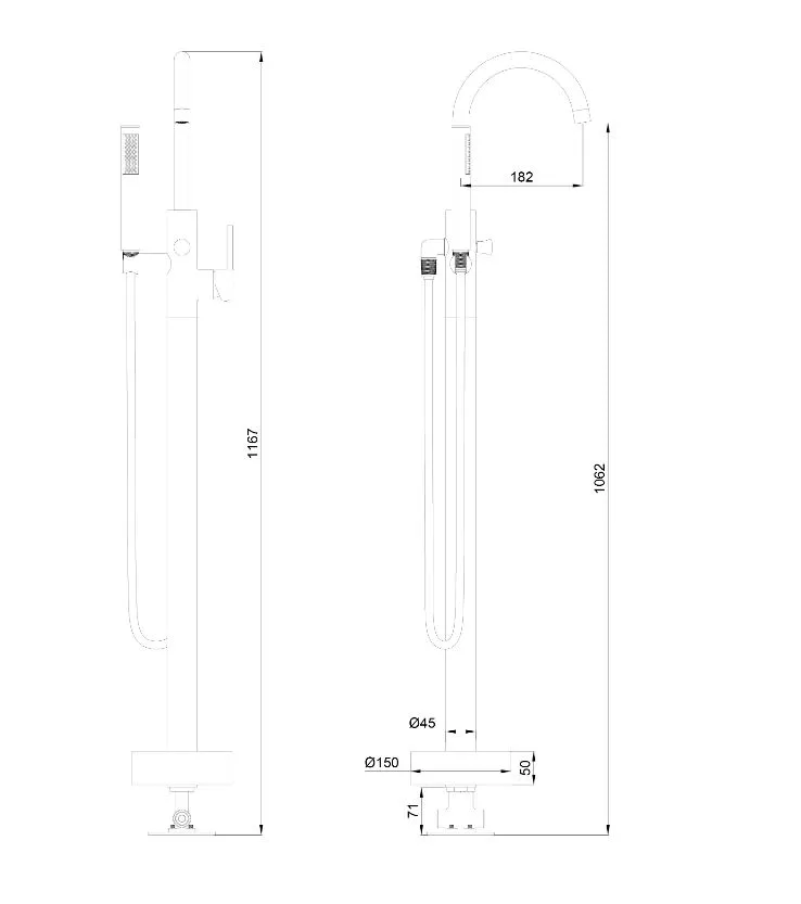 - Душевой шланг с защитой от перекручивания: 150 см.