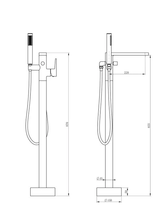 - Душевой шланг с защитой от перекручивания: 150 см.