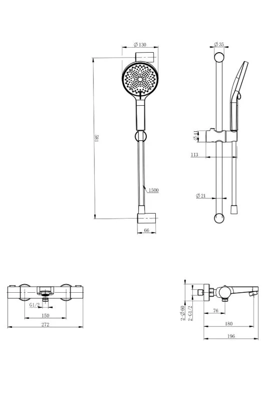 - Душевой шланг с защитой от перекручивания: 150 см.