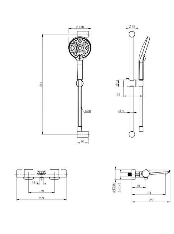 - Душевой шланг с защитой от перекручивания: 150 см.