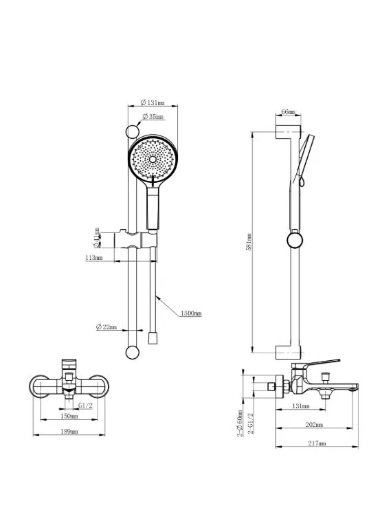 - Душевой шланг с защитой от перекручивания: 150 см.
