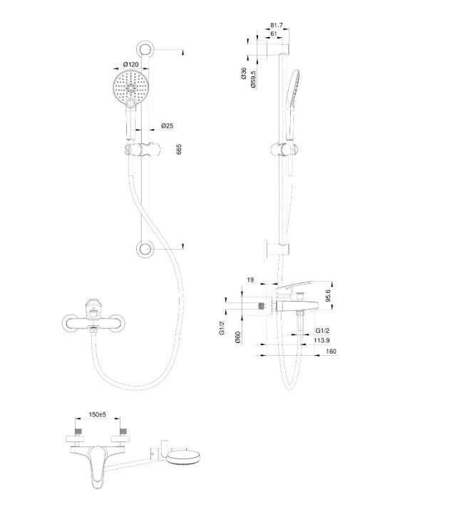 - Душевой шланг с защитой от перекручивания: 150 см.