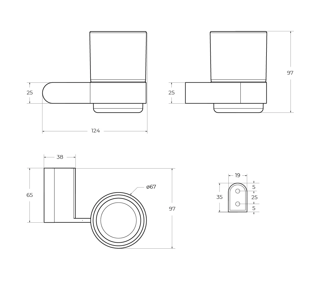 - Размеры (ШхВхГ): 124х97х97 мм.