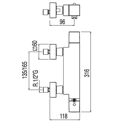 Термостат для ванны Tres Cuadro 1071749 с лейкой