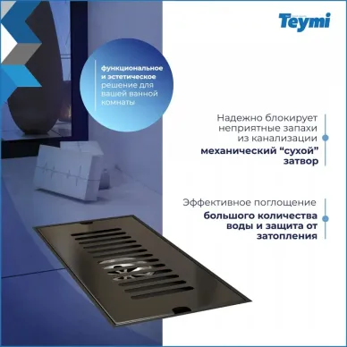 Продукция Teymi – это надежное решение для водоотведения, высококачественные материалы, используемые при производстве, гарантируют длительную эксплуатацию без потери технических характеристик. Душевой трап Helmi станет надежным функциональным элементом вашей ванной комнаты.