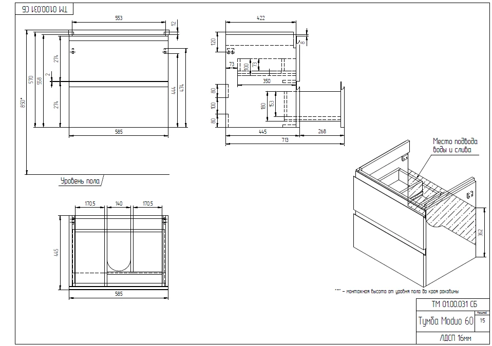 MODUO - это коллекция с безграничными возможностями. Богатый размерный ряд мебели для ванной комнаты делает коллекцию уникальной. С широким портфолио продуктов MODUO можно удобно организовать любое пространство: от просторных ванных комнат до сложных, узких или крошечных туалетных комнат. Основной отличительной особенностью коллекции является её модульность, которая позволяет создавать многоэлементные наборы самостоятельно и получить много места для хранения. В дополнение к широкому ассортименту элегантной мебели, коллекция включает в себя раковины. Мы представляем MODUO, коллекцию безграничных возможностей.К тумбе рекомендуем раковины: СOMO60;MODUO60;COLOUR60. ВНИМАНИЕ: К ТУМБАМ MODUO ПОД РАКОВИНУ ПОДХОДЯТ ИСКЛЮЧИТЕЛЬНО КЕРАМОГРАНИТНЫЕ СТОЛЕШНИЦЫ. ПОДХОДЯЩИЕ СТОЛЕШНИЦЫ СМ. В РАЗДЕЛЕ СОПУТСТВУЮЩИЕ ТОВАРЫ