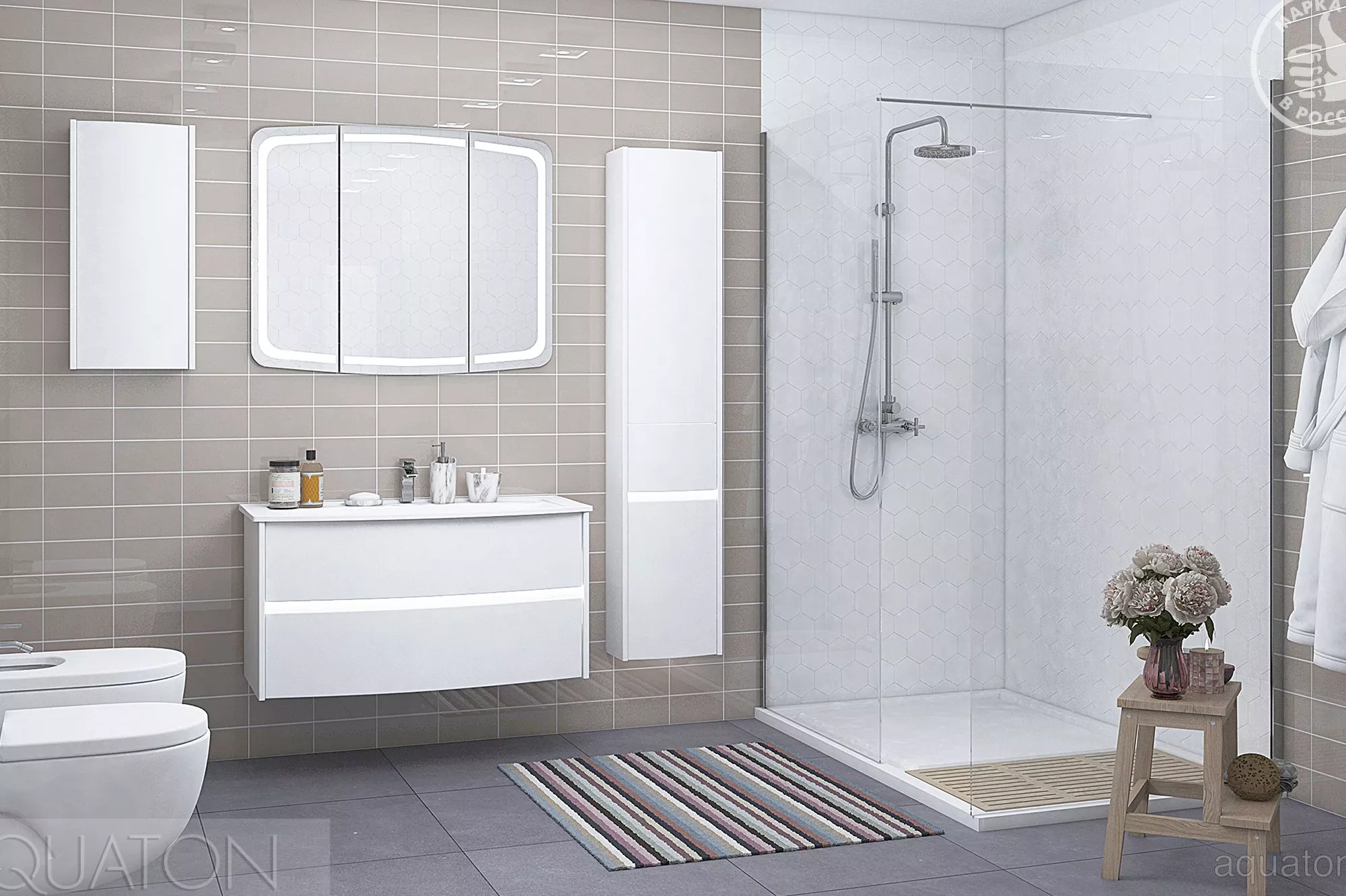 Подвесная тумба Астера 95 от бренда AQUATON в современном стиле отличается изящной закругленной формой фасада, повторяющей плавные линии раковины. Отсутствие лицевой фурнитуры подчеркивает простой и лаконичный дизайн модели. Корпус из влагостойкой ЛДСП и фасады из МДФ окрашены в белый цвет полиэфирной краской ультрафиолетового отверждения с высокой степенью глянца, которая обеспечивает дополнительную защиту от влаги, прочность, износостойкость, а также привлекательный внешний вид изделий. Тумба оборудована двумя вместительными выдвижными ящиками, которые открываются лёгким нажатием благодаря направляющим, оснащенным системой push-to-open.