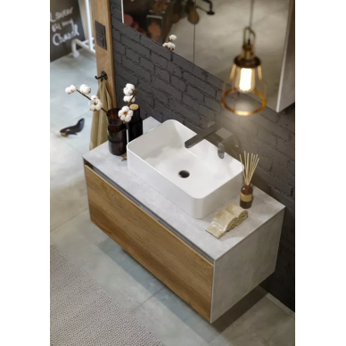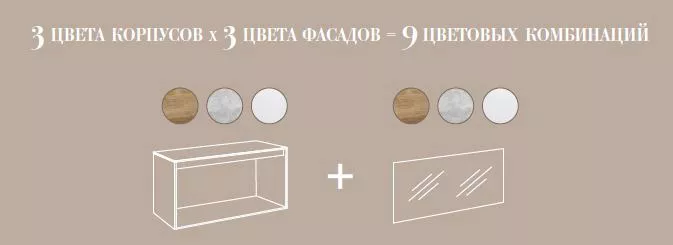 Гарнитуры Mobi выпускаются в четырёх размерах: 60, 80, 100 и 120 см. Фасады, боковины и столешницы из МДФ толщиной всего 10 мм. Коллекция Mobi гармонично вписывается в интерьер любой современной ванной комнаты. Так как существует возможность комбинировать фасады и корпуса трех цветов: бетон светлый, дуб балтийский и белый глянец. При этом умывальник может устанавливаться в любом месте, а не только центру. На тумбы 100 и 120 см можно установить один или два умывальника. Тумбы Mobi c двумя ящиками: основной и внутренний, скрытый за фасадом. Направляющие ящиков от австрийской фирмы «Blum» обеспечивают плавное и мягкое закрывание. Производитель на них даёт вечную гарантию. Внутренний ящик тумб укомплектован пластиковым разделителем для хранения различных мелочей. Независимо от цвета корпусов и фасадов внутренняя отделка ящиков комбинированная: боковины – цвет бетон светлый, дно – дуб балтийский. Конструкция тумб позволяет подвести коммуникации как из стены, так и из пола. В комплект тумб Mobi входит специальный сифон, позволяющий экономить пространство мебели. Поэтому внутренний ящик тумб полноразмерный. В зеркальных шкафах Mobi отсутствуют перегородки – это позволяет максимально использовать внутреннее пространство. Зеркальный шкаф 60 см – с одной дверью на петлях Blum с доводчиком, в остальных размерах – две двери. Боковины зеркального шкафа могут быть трёх цветов. Аналогично тумбам есть возможность комбинировать цвета корпусов и фасадов пенала. Двери пенала с системой открывания «push-to-open» (открываются нажатием). Петли австрийского производства Blum. Ширина универсального левого/правого пенала 36,5 см. Все предметы коллекции оснащены итальянскими навесами Camar, которые выдерживают нагрузку до 200 кг. |