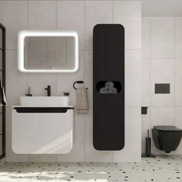 Тумба для ванной Creavit Pion Plus PN0070.01.BGR + UL060-00CB00E-0000 70 см, подвесная, с раковиной, белый